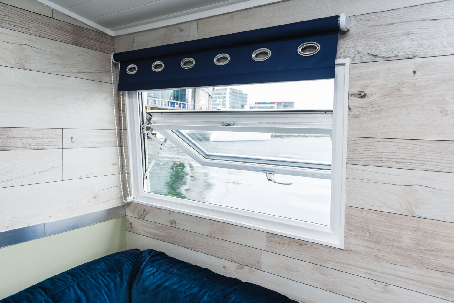 Easy to operate, all you need to do once open is grab the top of the frame and pull the window down.